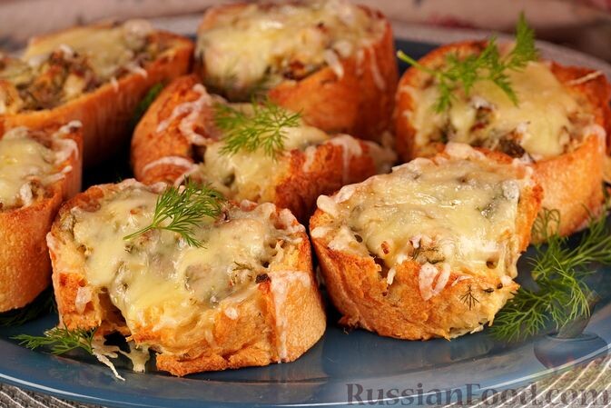 - Гнёзда из багета с рыбой и сыром — аппетитная закуска, где нежные кусочки рыбы, запеченные в багете, дополнены хрустящей корочкой сыра.