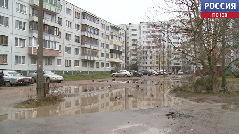 Комфортная зона парковки с новым асфальтом. Об этом только мечтают жильцы многоэтажки на Энтузиастов в Пскове.