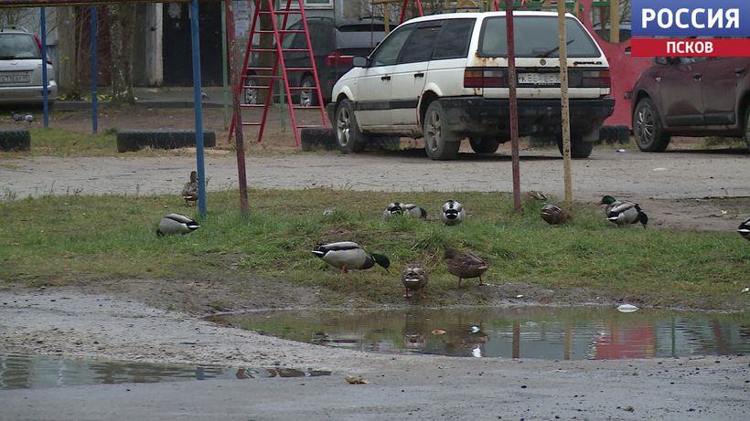 Сейчас во дворе в зеленой зоне образовался настоящий пруд, на котором даже поселились утки. Они вальяжно разгуливают по территории и купаются в огромной луже. Одним словом, чувствуют себя комфортно. Чего не скажешь о жителях микрорайона.