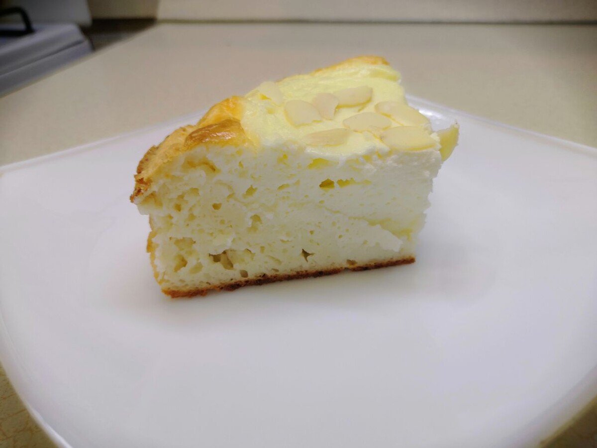 Для начинки нужно объединить мягкий творог с греческим йогуртом, яйцом, подсластителем и кукурузным крахмалом. Крупно размешанная масса вливается на подготовленную основу. Важно, чтобы бортики теста немного выступали над начинкой.