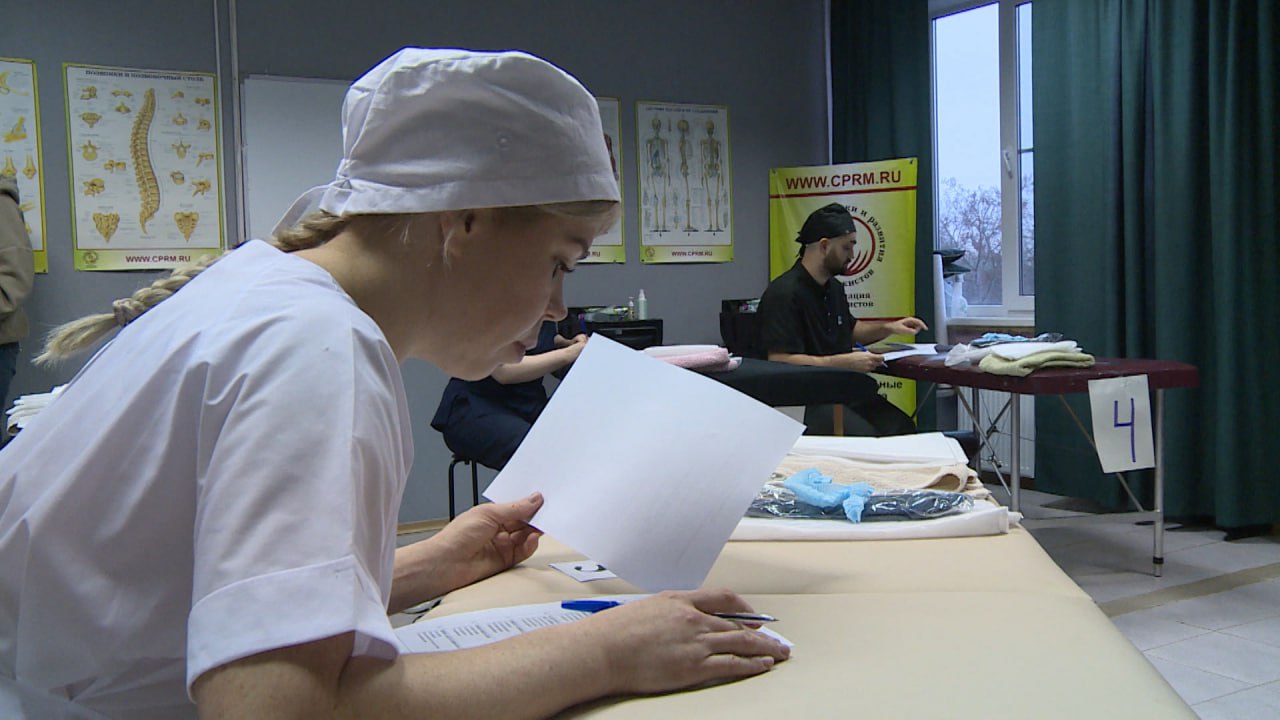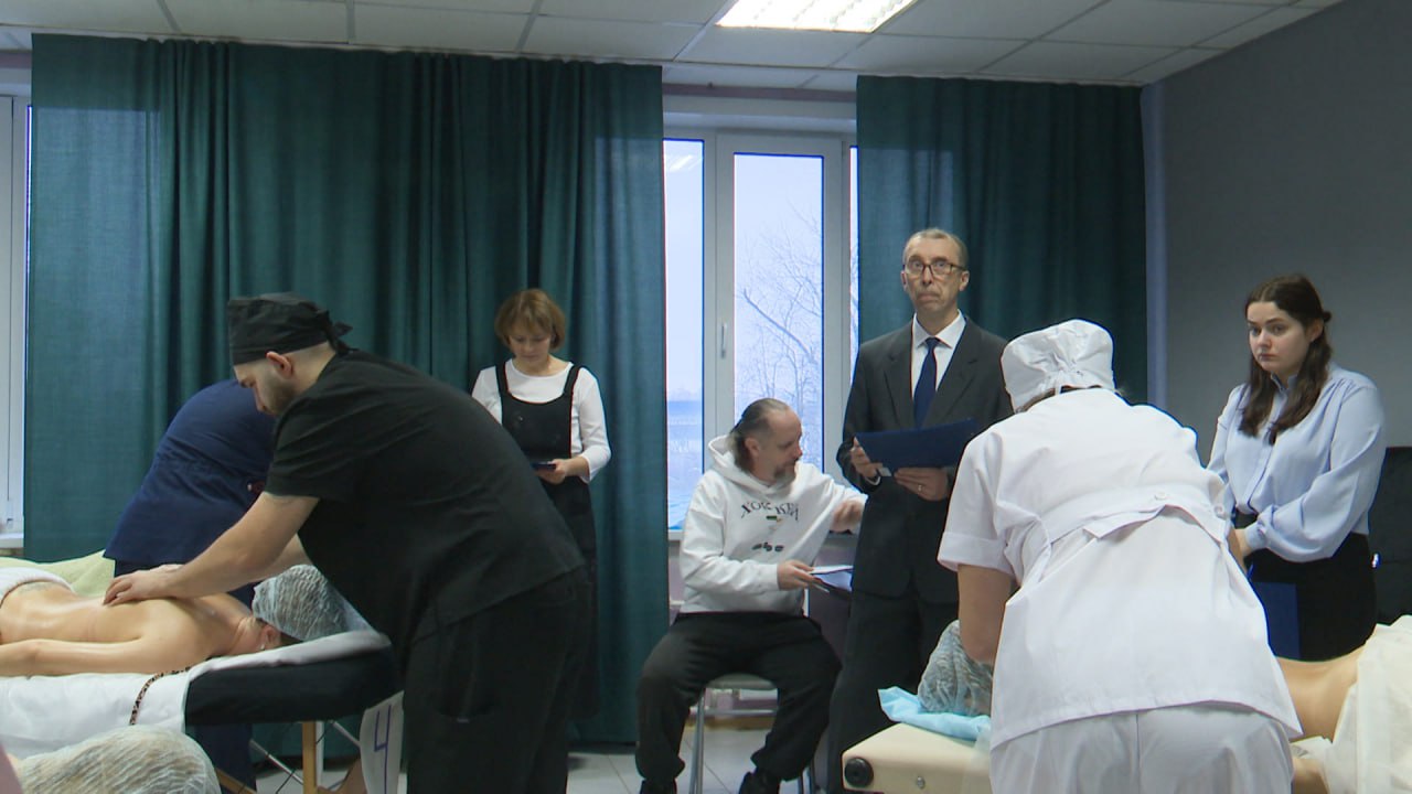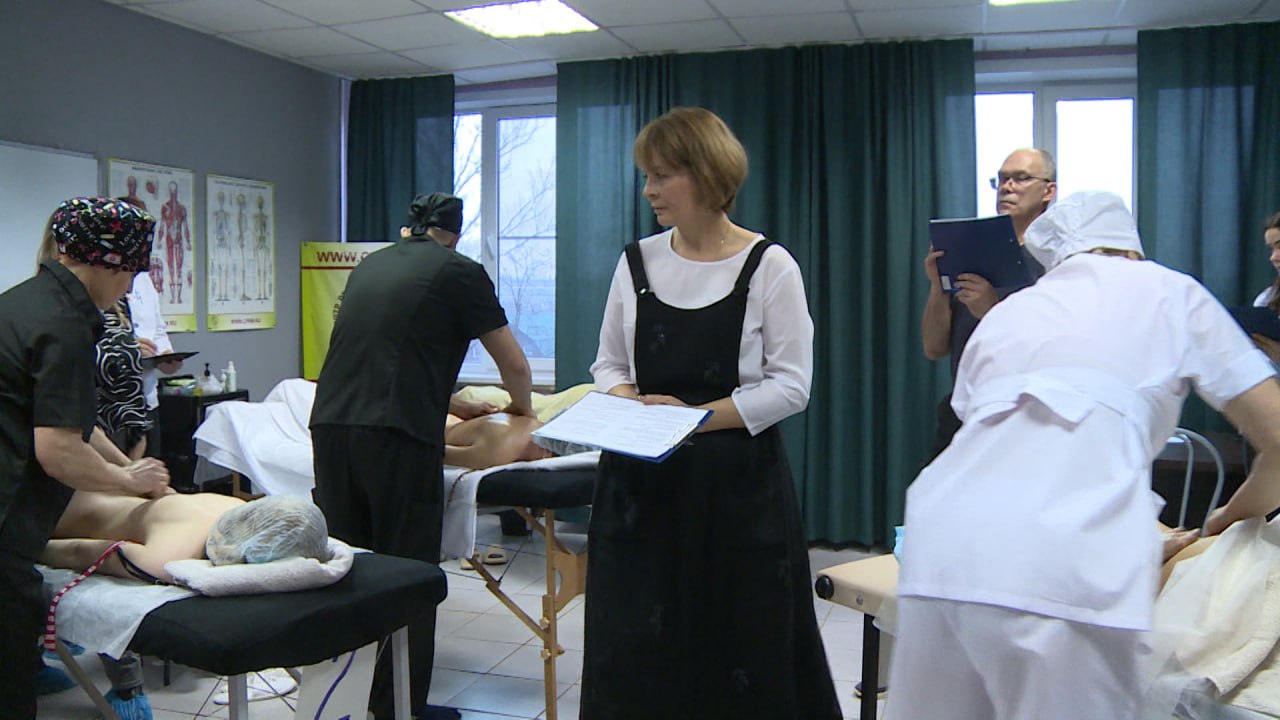 Лучшего по профессии выбирают в Пскове. В этом году в конкурсе участвуют работники четырех специальностей: плиточники, массажисты, экскурсоводы и сварщики. Состязание проходит в несколько этапов, после чего жюри выбирают лучших по нескольким критериям. За работой массажистов наблюдал Игорь Данилов.