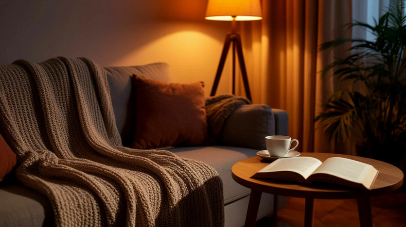 Мягкие текстильные элементы несут визуальное тепло и уют. Плед или подушки, перемещенные из одной комнаты в другую, способны радикально изменить восприятие пространства. Ароматы также играют значительную роль в создании уюта. Запах свежей выпечки или цитрусовых наполняет дом теплом и домашним комфортом. Напротив, активное использование ароматов, таких как кофе или выпечка, создаёт атмосферу уюта и привязывает к моментам счастья.