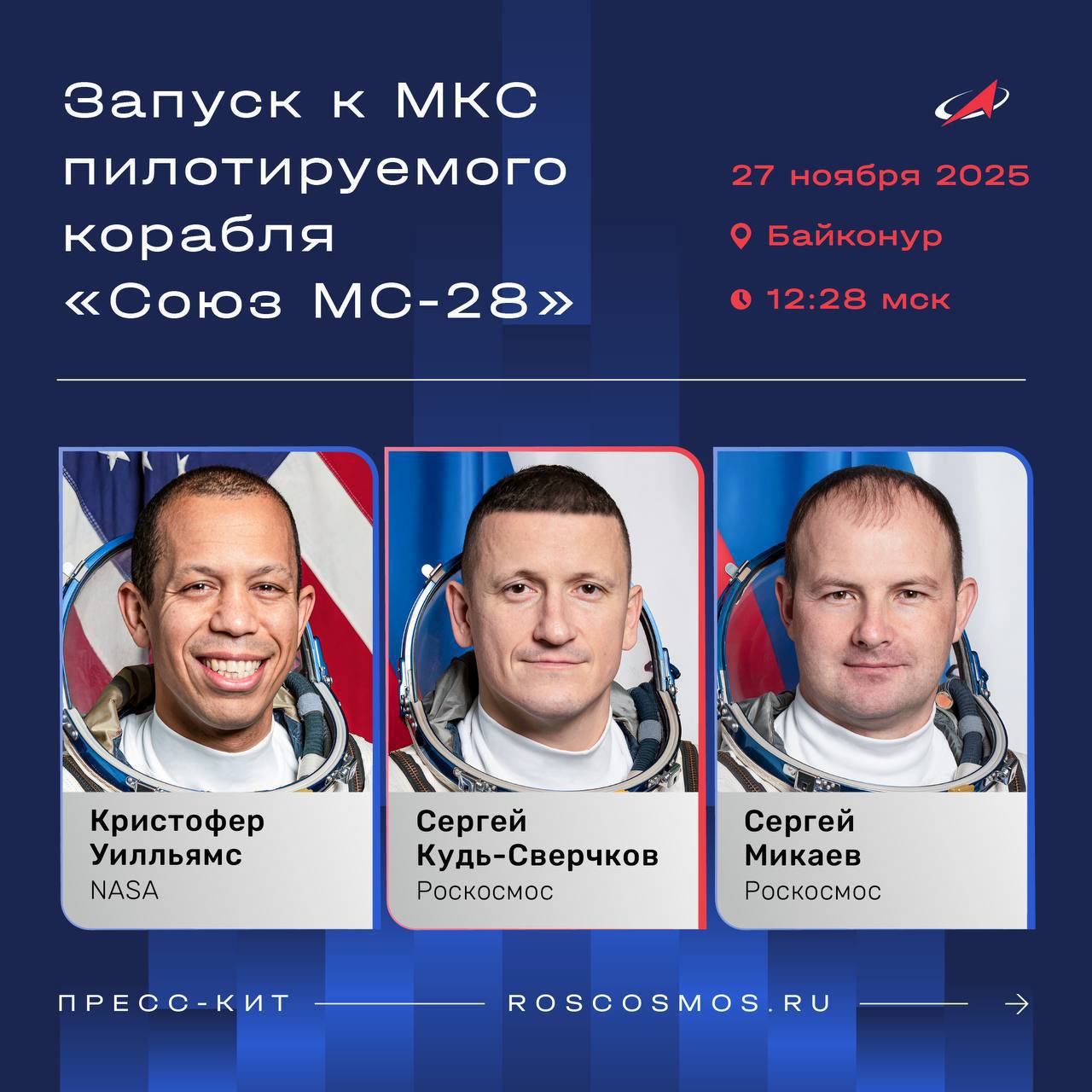 Сегодня, в 12:27 с космодрома Байконур запланирован запуск ракеты-носителя «Союз-2.1а», которая отправит в космос экипаж корабля «Союз МС28».