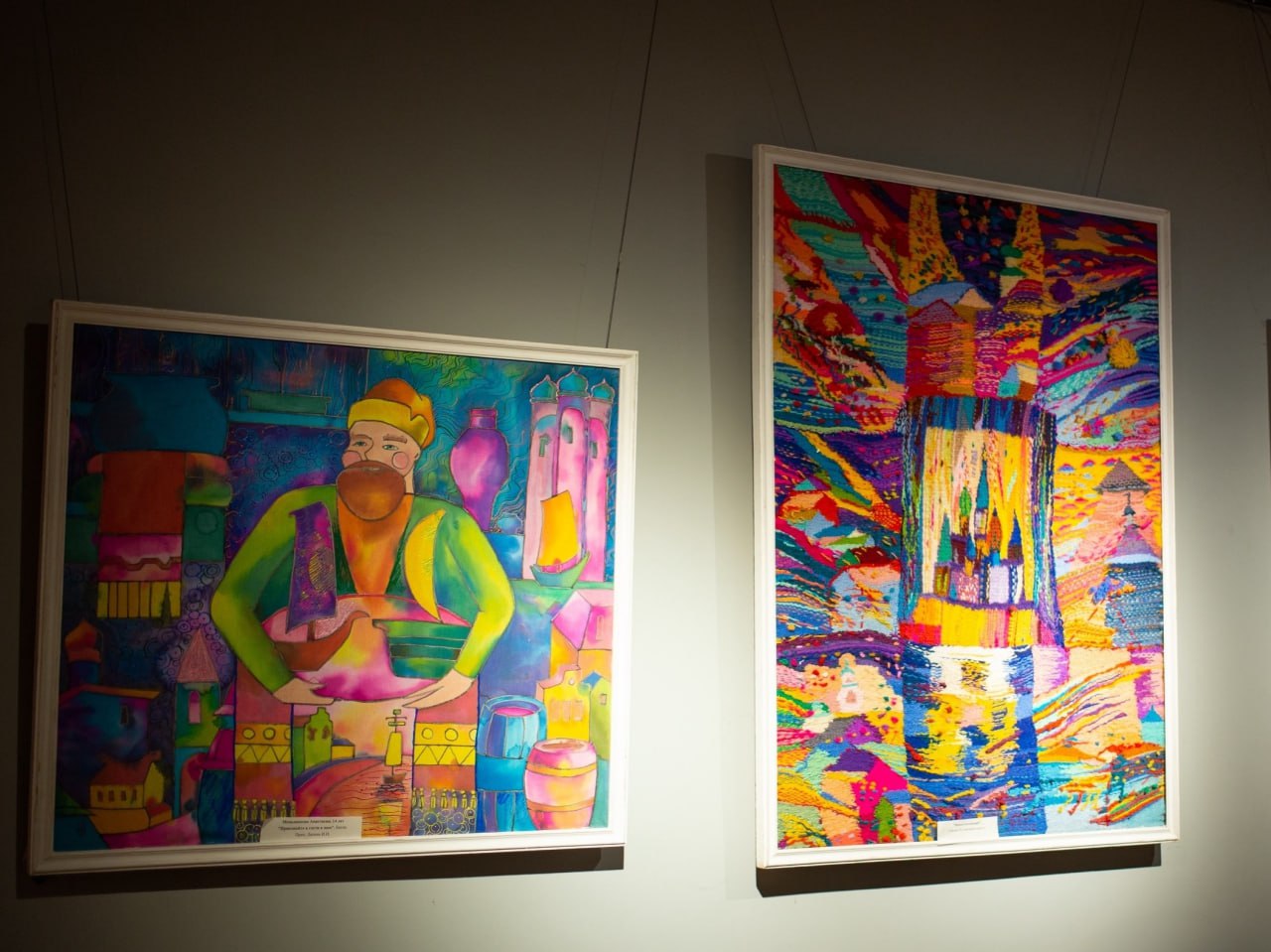 В арт-пространстве Главного дома открылась выставка работ учащихся Детской художественной школы города Пскова, созданных в рамках дополнительного обучения по направлениям батик и гобелен.