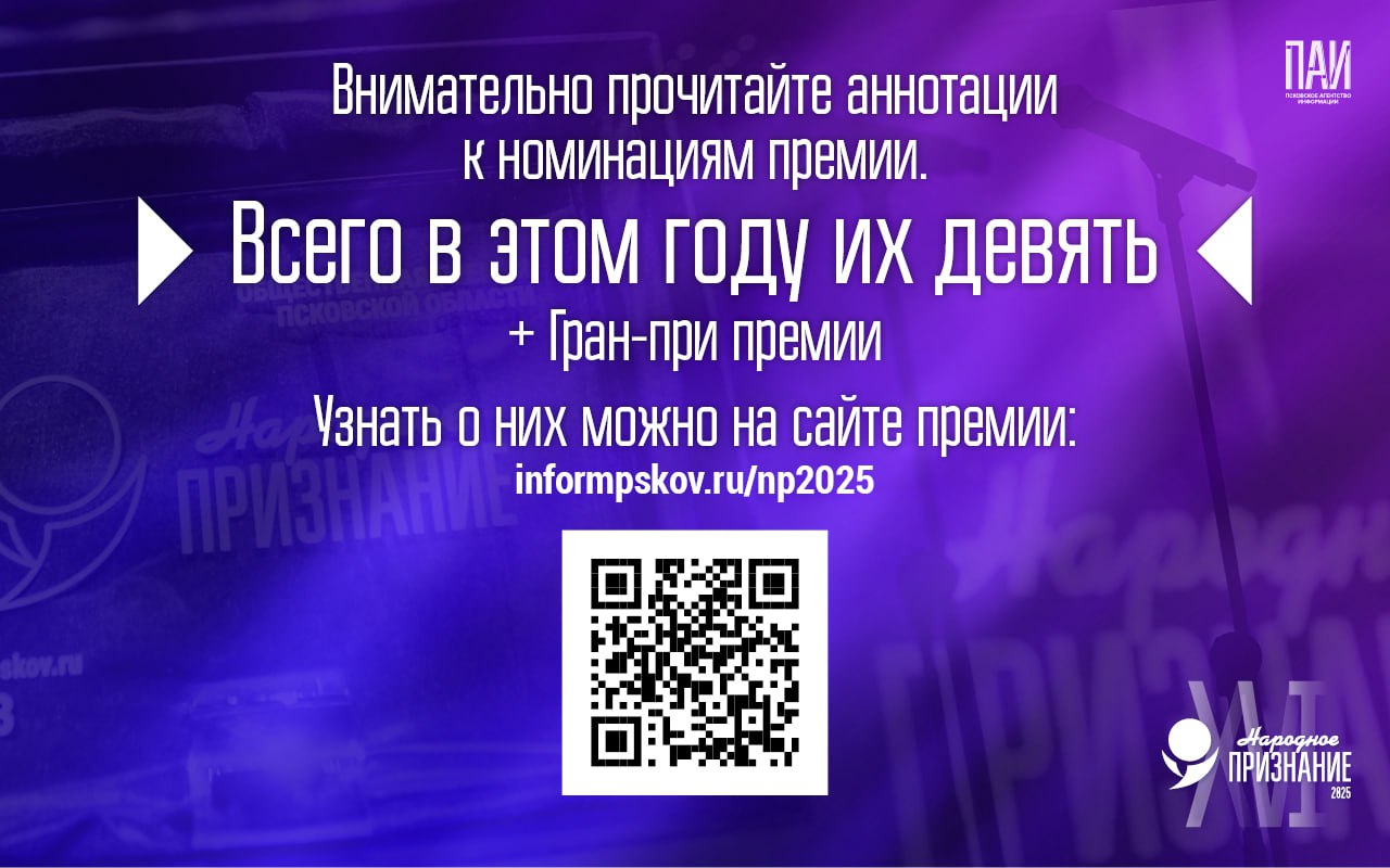 Напомним, Первая общественная премия Псковской области «Народное признание» проходит в 16-й раз.