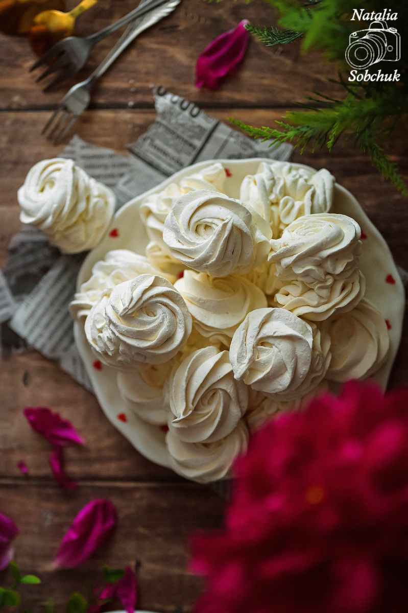 5. Переложите зефирную массу в кондитерский мешок и отсаживайте на пергаментные листы. Оставьте остыть и стабилизироваться на ночь для достижения идеальной текстуры.