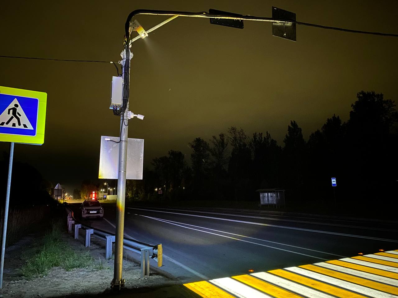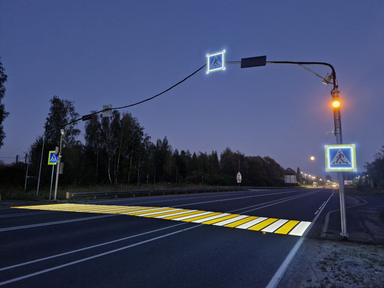 Для обеспечения безопасности ГБУ ПО «Псковавтодор» установил умный пешеходный переход на автодороге Псков – Гдов – Сланцы – Кингисепп – Краколье.