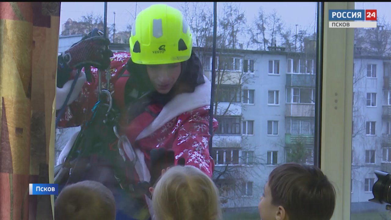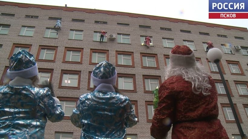 Настоящее чудо для маленьких пациентов сразу нескольких больниц региона сегодня устроили Деды Морозы. Они спустились откуда-то с неба прямо к окнам палат и поздравили детей с самым волшебным праздником. "Новогодний десант" стал уже доброй традицией. Пятый год акцию проводят: МЧС России совместно с региональным отделением Всероссийского студенческого корпуса спасателей и ресурсным центром "Добро РФ" Псковской области. Расскажет Анастасия Николаева.