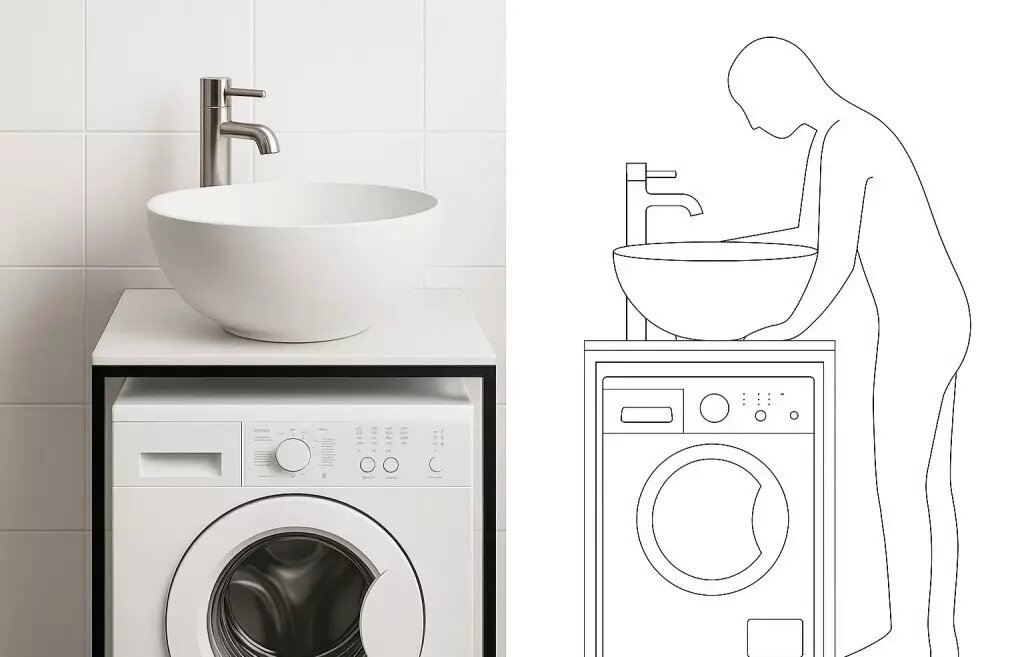 - Удобство подключения: Зачастую раковина и стиральная машина могут использовать одни и те же водопроводные и сливные системы, что значительно упрощает монтаж и минимизирует затраты на сантехнические работы.
