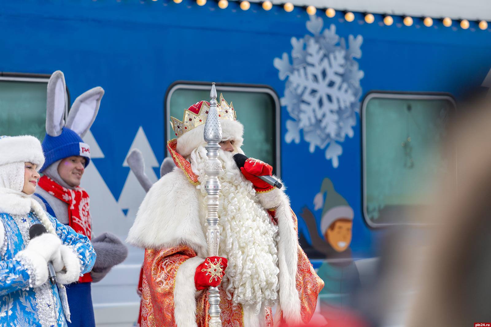 В воскресенье, 4 января, в Псковскую область прибудет поезд Деда Мороза. Большую часть дня состав будет находиться в Великих Луках, а вечером сделает остановку на станции Дно. Организаторы подготовили для юных жителей городов и гостей праздничную программу.