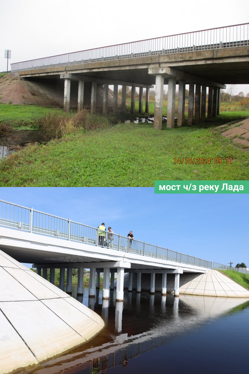 Отремонтированы мосты через реки Локнянка, Пенная, Романовка, Пскова, Вербочка, Лада, Селяха, Череха. Кроме того, досрочно завершён капитальный ремонт моста через реку Полонка.