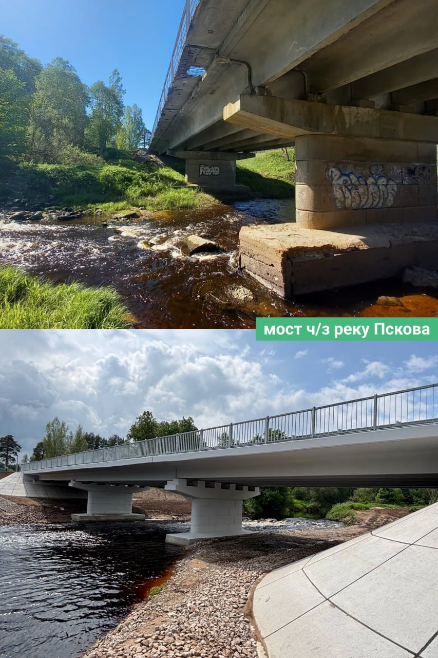 В 2025 году в Псковской области привели в порядок 9 мостовых сооружений. На фотографиях – наглядный результат выполненных работ!