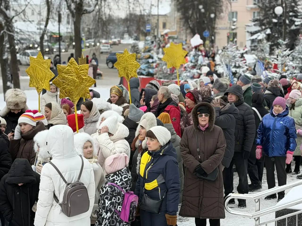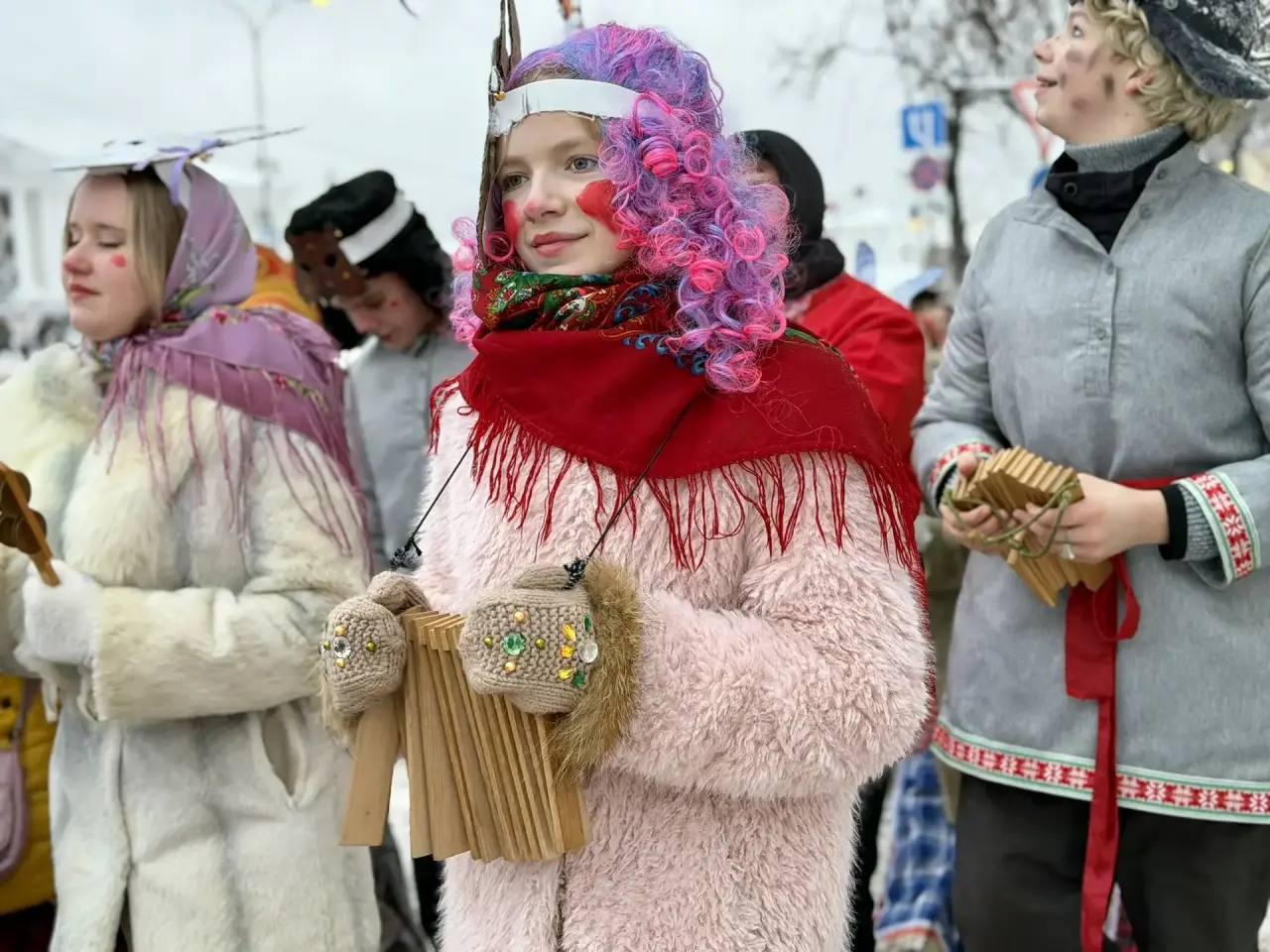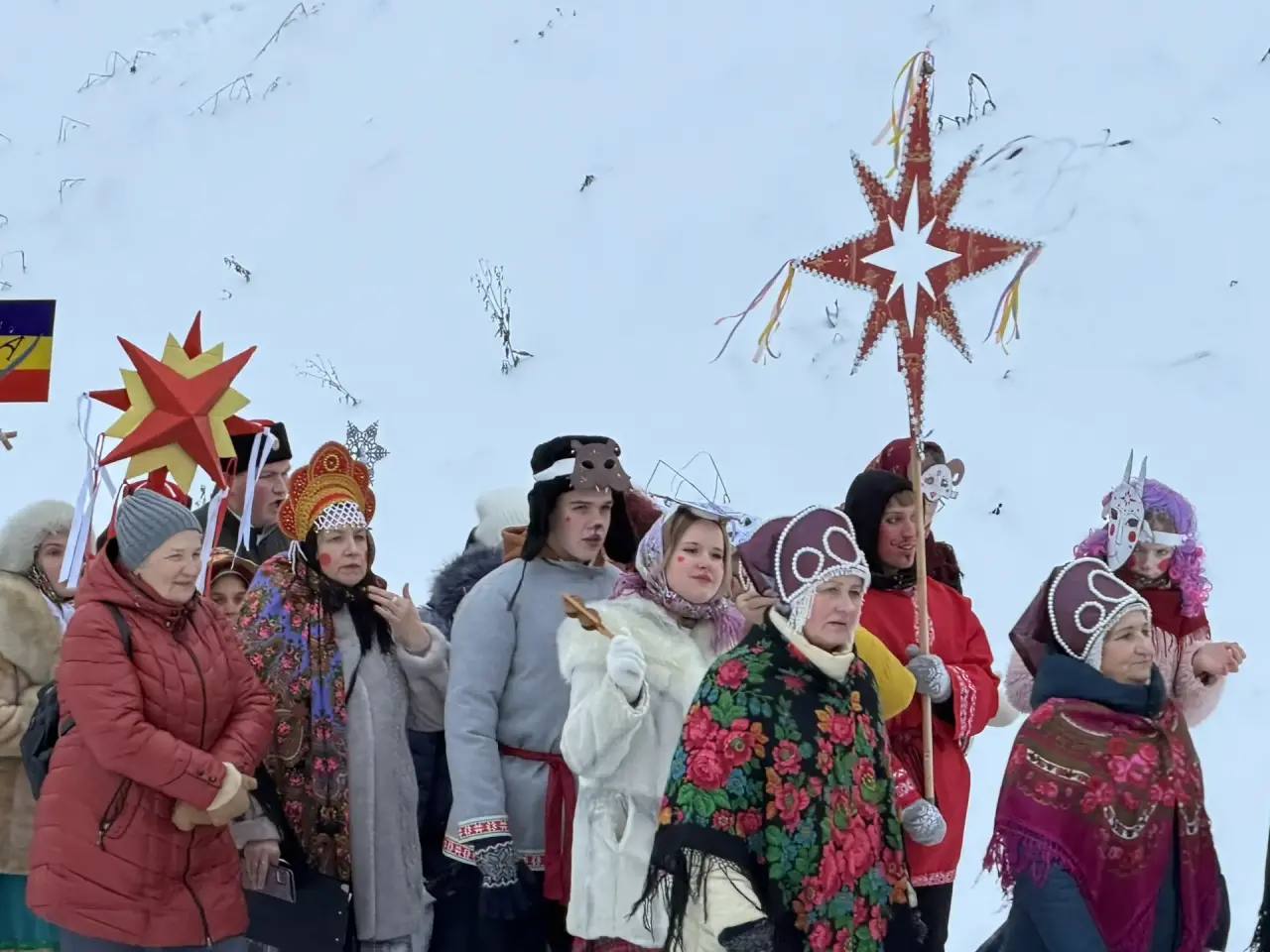 Это было настоящее море народных костюмов, звонких песен и улыбок. Колонна колядующих была такая длинная и многолюдная, что только с пешеходного моста можно было увидеть её начало и конец!