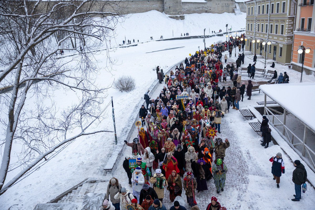 Более 600 артистов всей Псковской области объединило «Рождественское шествие» в рамках проекта «Рождество начинается здесь». Праздничная колонна стартовала от парка Строителей, прошла через пешеходный мост и завершила свой путь на противоположном берегу реки Псковы у Троицкого моста.