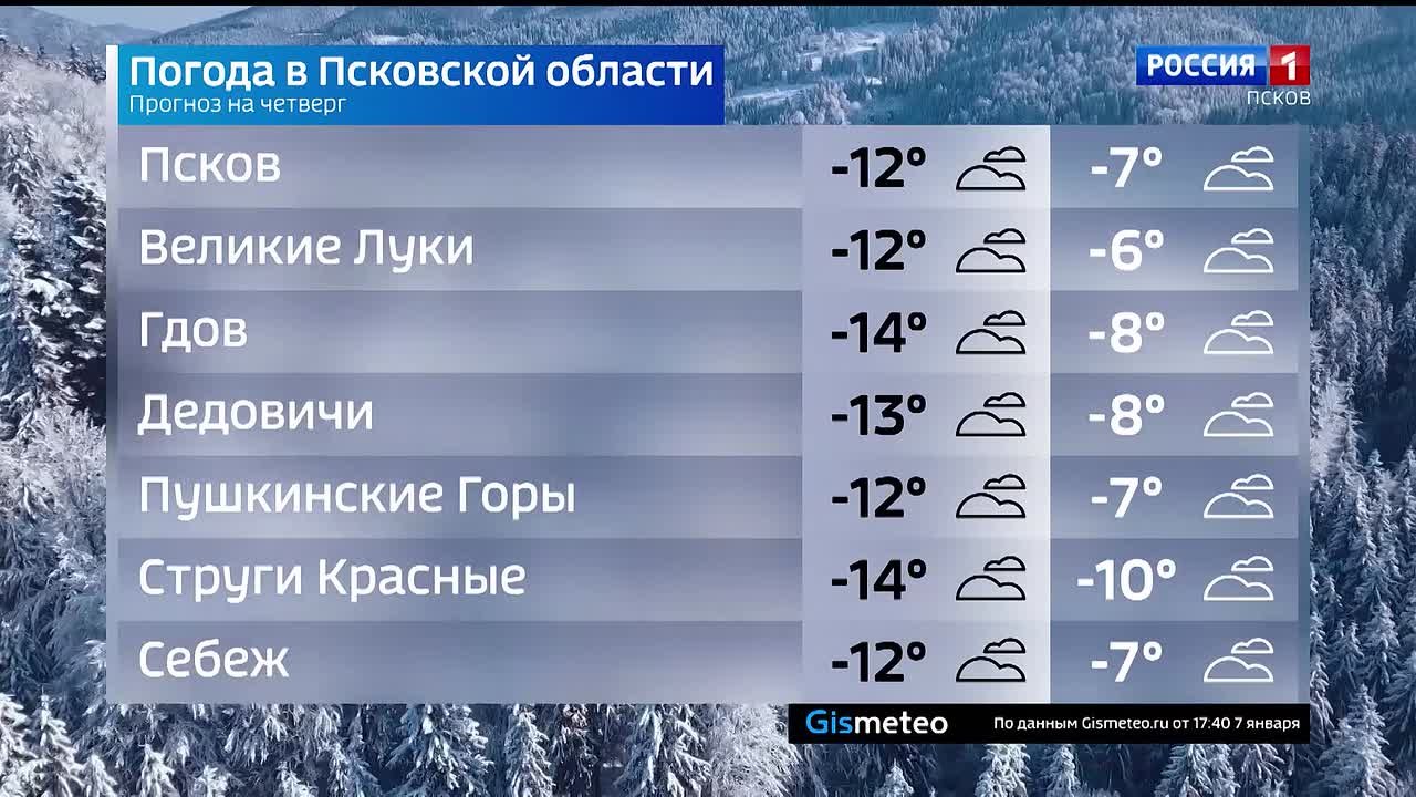 Прогноз погоды в Псковской области на 8 января