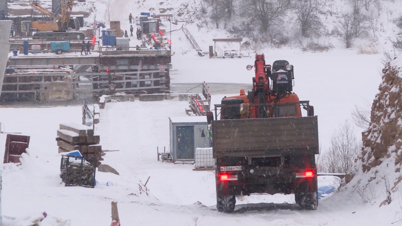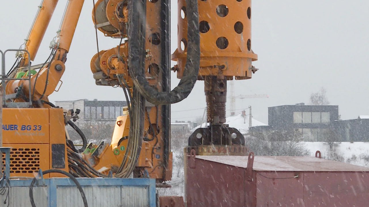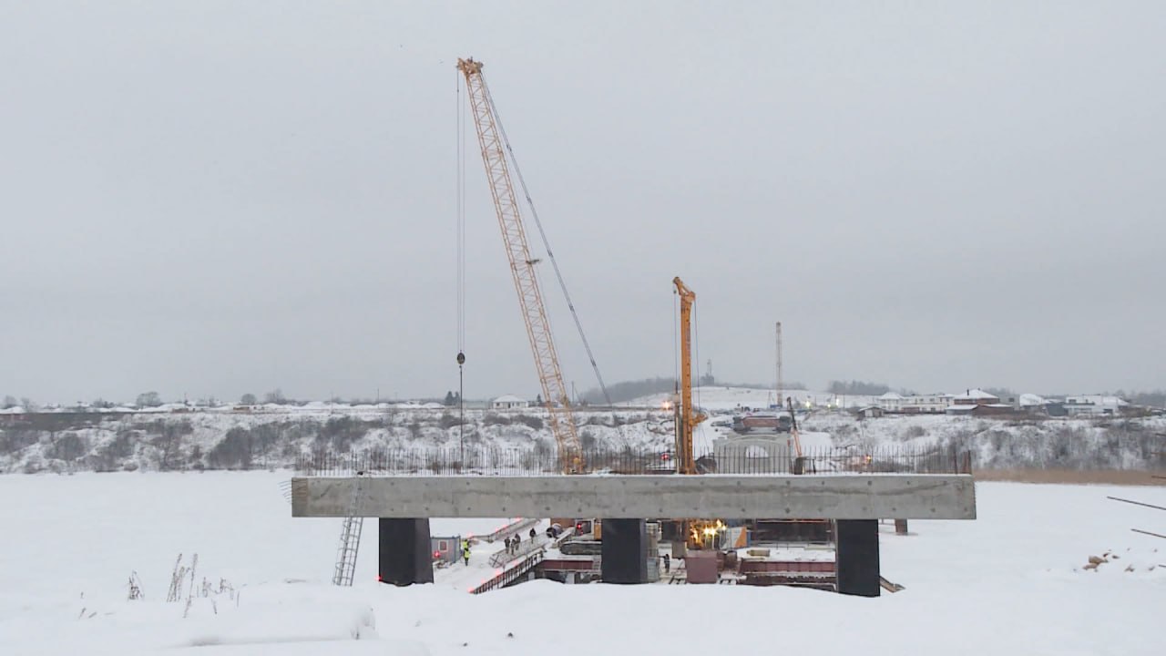 Мороз и снегопад не мешают продолжению строительства Северного обхода в Пскове. На четвертой опоре моста через Великую сейчас идет разработка котлована, а на пятой заливают буронабивные сваи. На берегу реки в районе деревни Хотицы сейчас активная стадия сборки пролетного строения.