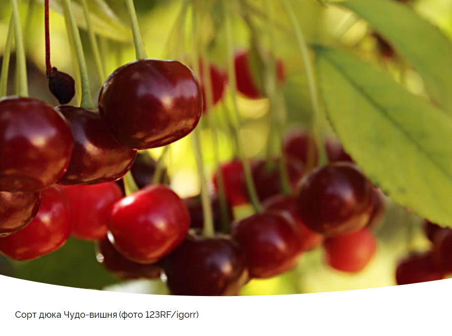 Плоды Чудо-вишни отличаются сладким вкусом с легкой кислинкой и ярким вишневым ароматом. Однако важно помнить, что для успешного оплодотворения необходимы опылители, так как сорт не самоплодный. В качестве подходящих опылителей можно использовать сорта черешни: Аннушка, Ипуть, Донецкий уголек и другие.