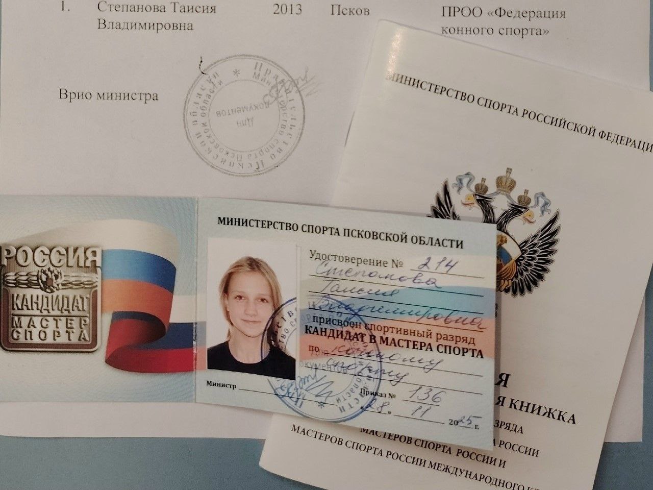 Спортивный разряд присвоен спортсменке по итогам участия в Чемпионате и Первенстве России, а также Всероссийских физкультурных соревнований по вольтижировке. Турниры проходили в Конаково с 8 по 13октября 2025года.