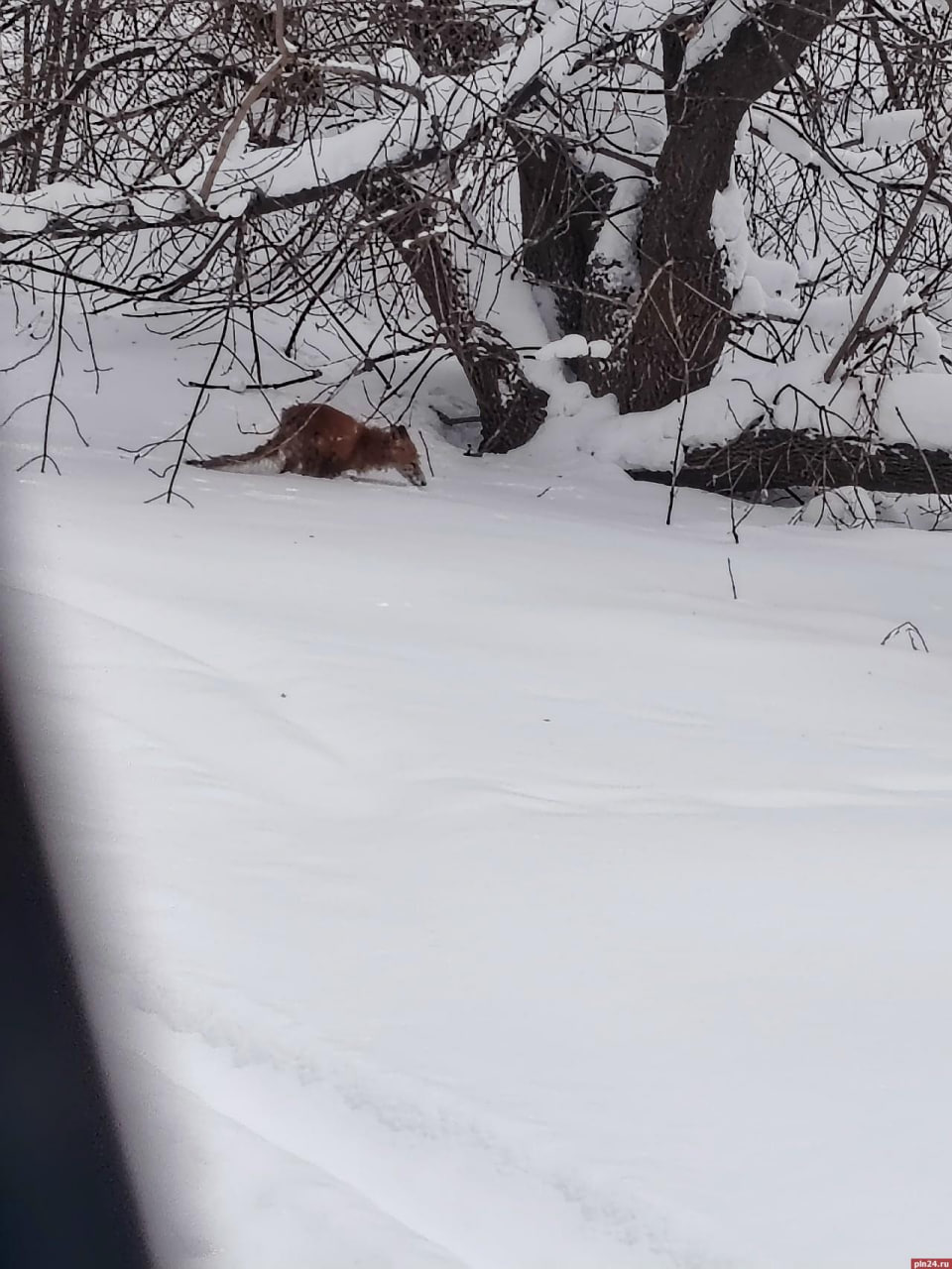 В районе ЖБИ-2 в Великих Луках местные жители заметили облезлую лису, которая бродила неподалёку от места, где катаются дети. Сначала возникли опасения по поводу бешенства, и горожан призвали не подходить к животному.