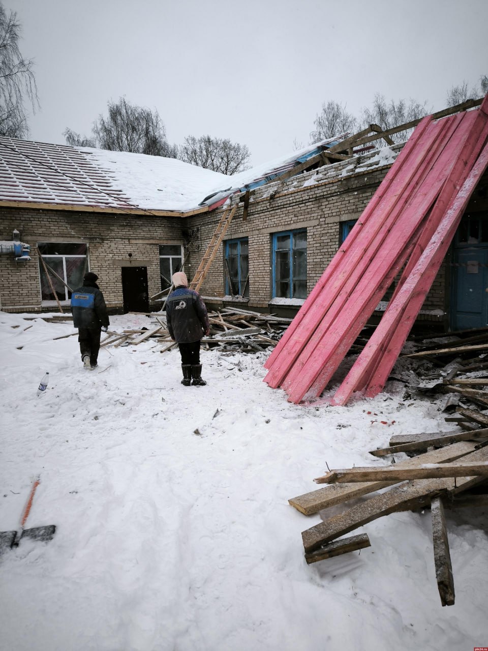 Дело в том, что ученики старших классов временно занимаются в здании детского сада «Росинка». А почему? А потому, что идет ремонт кровли в основной школе — время как раз для ремонта кровли подходящее.