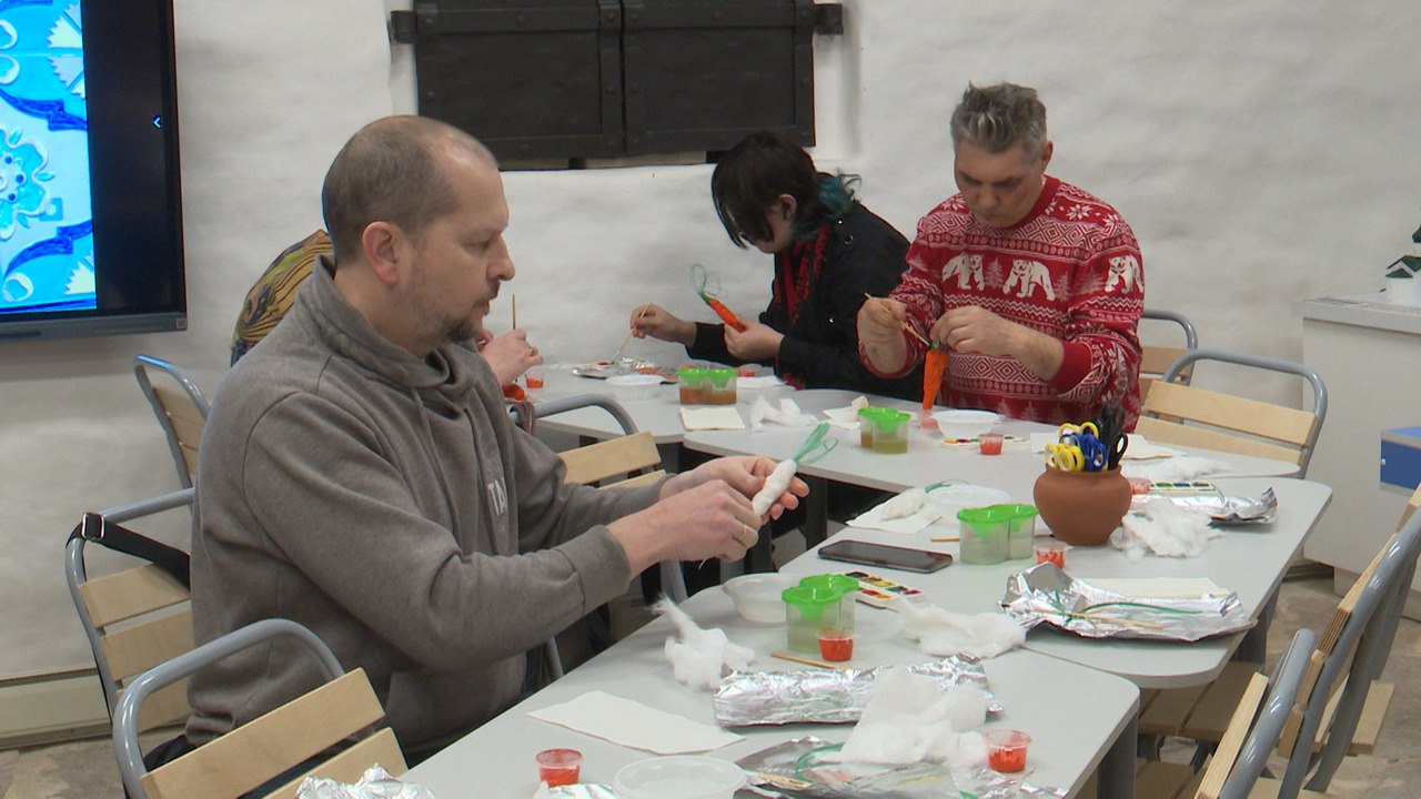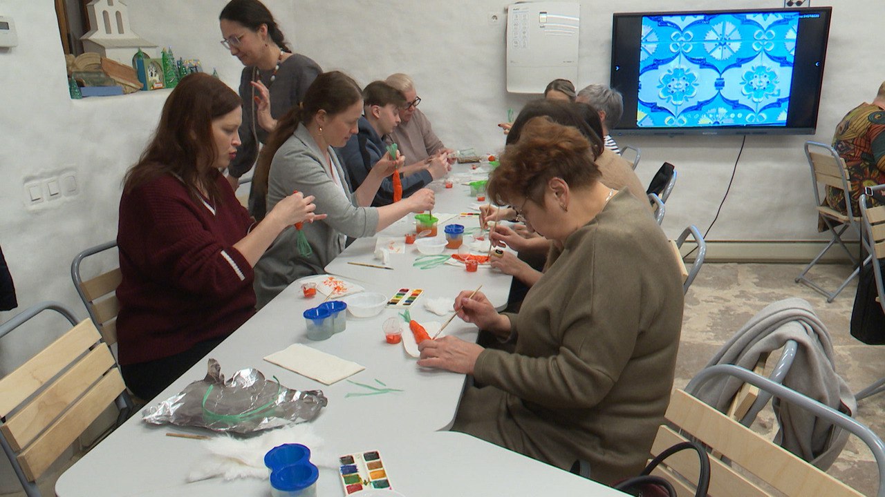 А еще гостям предложили сделать ватную игрушку – морковку, без которой не обойдется ни один снеговик.