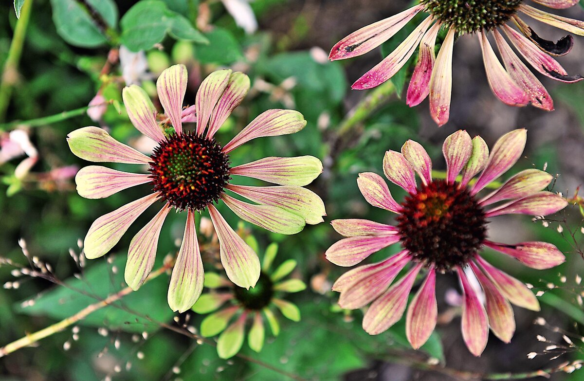 - Эхинацея и розы – отличная пара, которая обеспечит яркое цветение в течение всего лета.