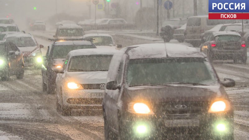 Выпавший снег вывозят из Пскова ночью.