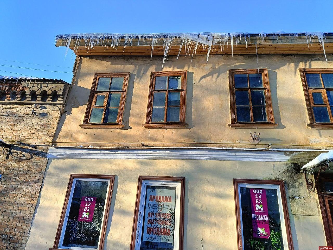 Фотофакт: В Пскове с крыши здания у школы №2 вновь свисают опасные сосульки