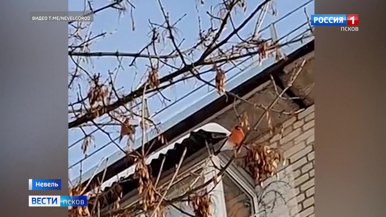 В Невеле местная жительница сняла на видео красногрудых обитателей лесов. Снегири устроились на деревьях прямо у многоэтажек. Певчие птицы были настолько увлечены поиском чего-нибудь съестного, что не обращали никакого внимания на людей. Как отмечают специалисты снегири любят плоды рябины и боярышника, а в кормушку лучше положить овес, пшеницу или просо, не откажутся они и от сала.