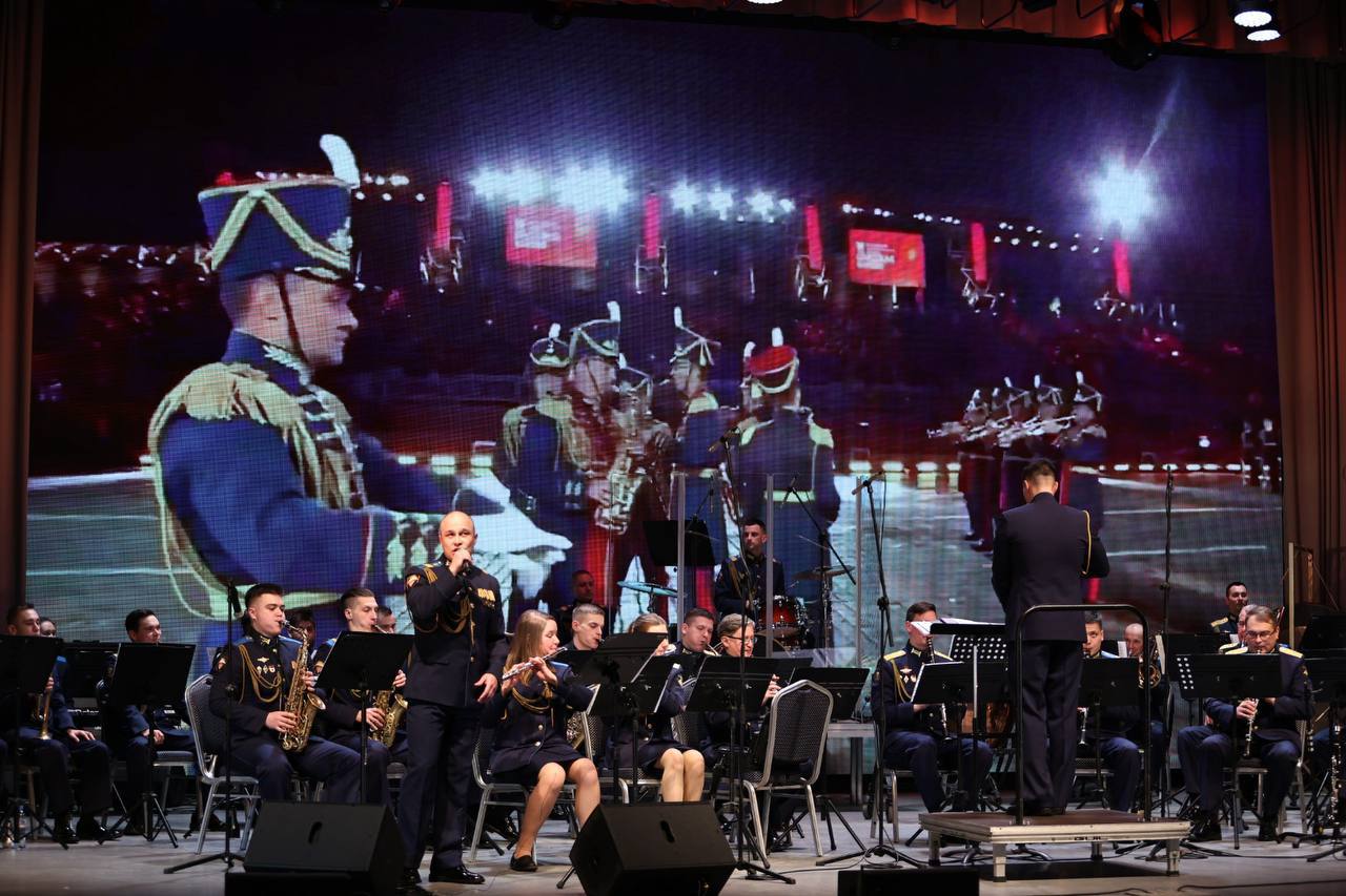 Концерт посвящен Дню военно-оркестровой службы ВС РФ. На мероприятии оркестры выступали под руководством дирижеров гвардии капитана Леонида Наезчикова, гвардии старшего лейтенанта Ильи Гаврюсева, гвардии лейтенанта Ивана Галковского.