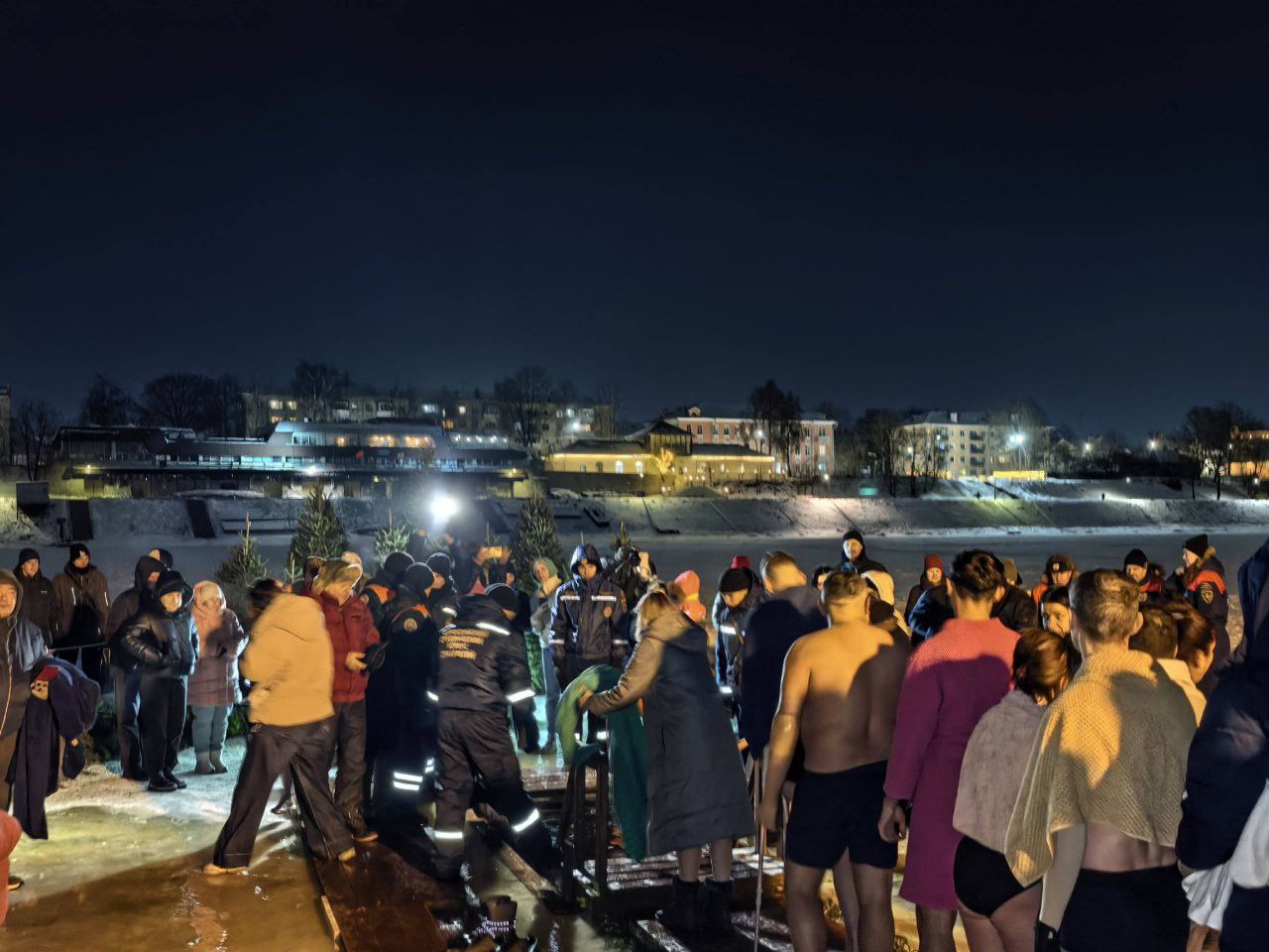 В канун праздника Крещения Господня жители Псковской области по традиции окунались в проруби. Даже сильные морозы не испугали сильных духом.