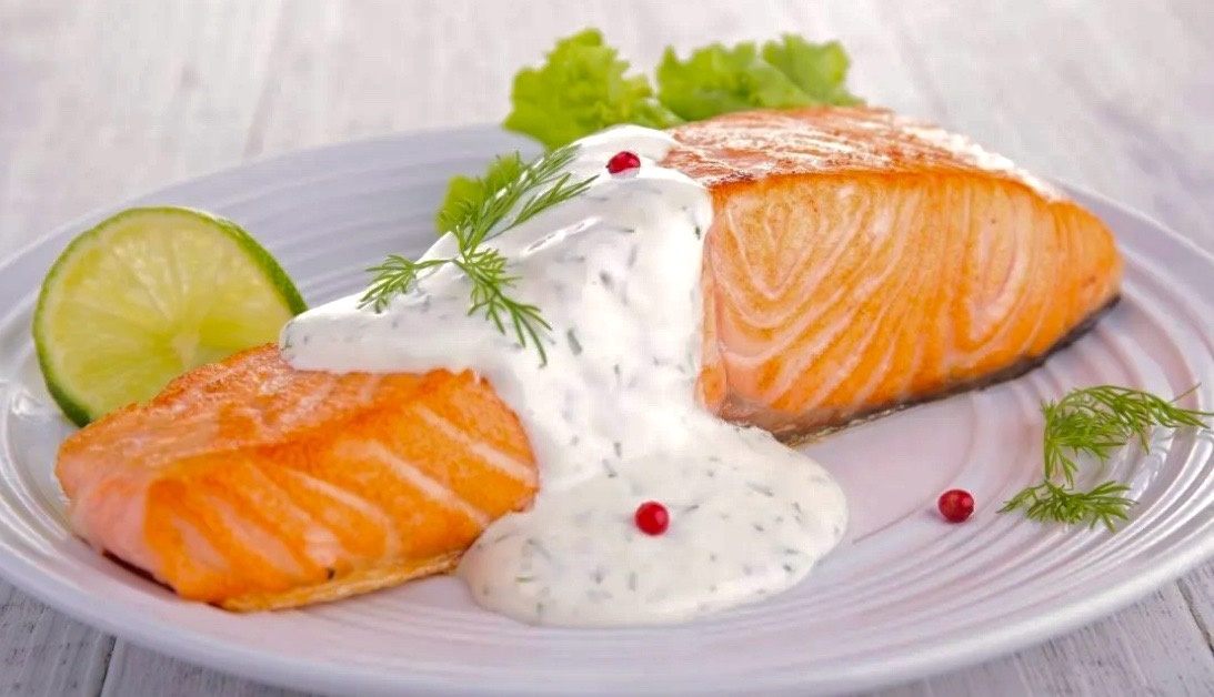 - Семга под сливочно-грибным соусом. Идеальное сочетание грибов и сливок, которые создают неповторимый вкус.