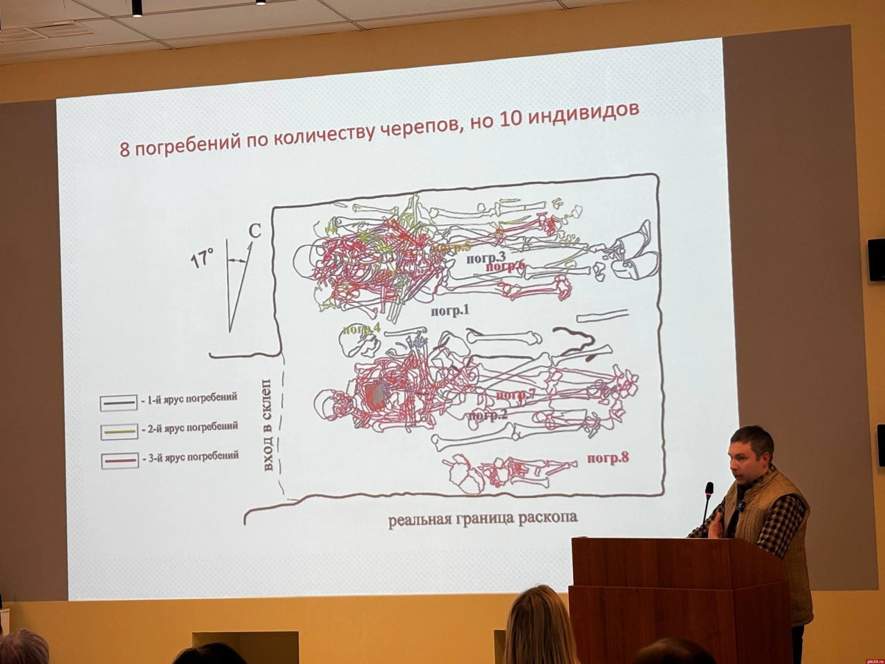 Мероприятие состоялось в рамках ежемесячного просветительского проекта «Археологи рассказывают». С подробным докладом «Западный склеп у храма Косьмы и Дамиана с Гремячей горы: данные истории и палеоантропологии» выступил начальник отдела хранения археологии Псковского музея-заповедника Антон Романовский.