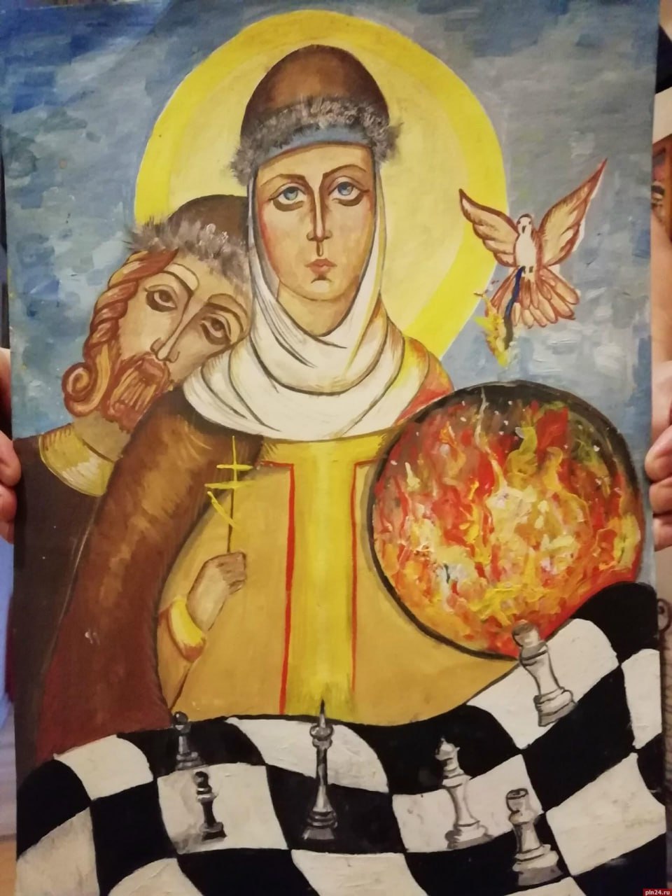 Её работа — «Шахматная партия княгини Ольги», выполненная гуашью на формате А3, — покорила жюри, в которое вошли преподаватели Санкт-Петербургской академии художеств имени Репина.