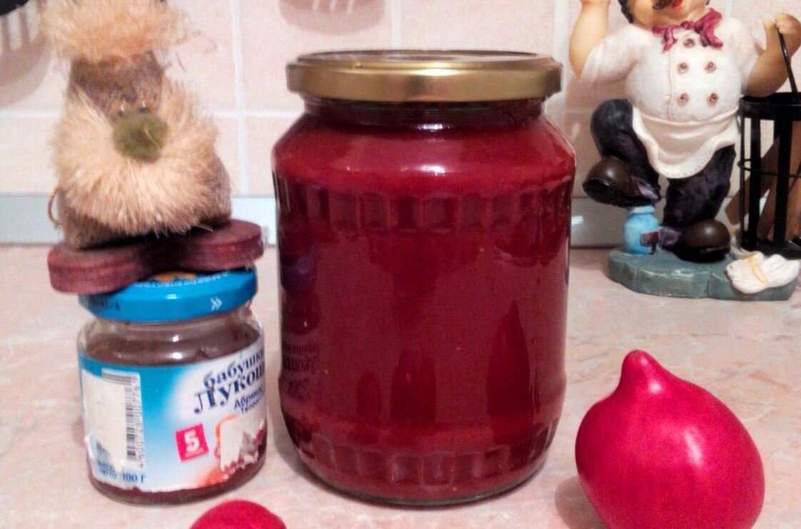 Кстати, остатки от перетирания — это лишь небольшая часть кожицы и семян, что подтверждает качество готового сока. Верните его обратно в кастрюлю и готовьте на умеренном огне, постоянно помешивая — уваривание займёт около 4 часов. Обязательно следите за консистенцией. Примерно через 2,5 часа заметите, что жидкость испаряется, и ваша паста начинает густеть.