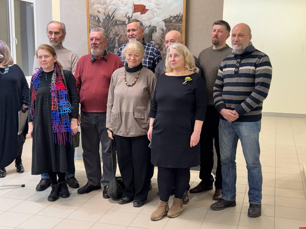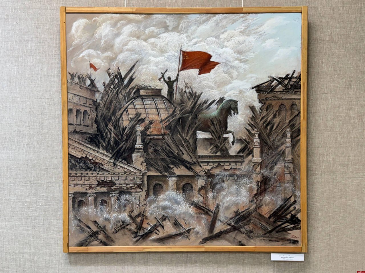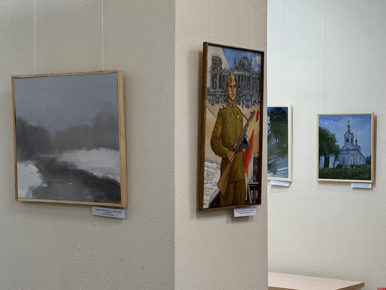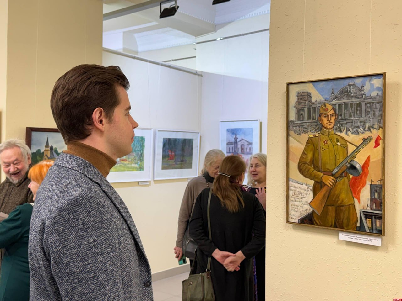 Выставочный зал пополнился десятками работ псковских живописцев. Все они посвящены подвигу штурмовой группы капитана Владимира Макова. Советские солдаты первыми водрузили красное знамя над зданием Рейхстага в Берлине 30 апреля 1945 года в 22:40.