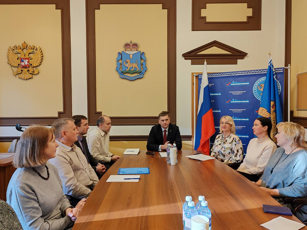 Сергей Кулаков, заместитель председателя Избирательной комиссии Псковской области и руководитель КРC, открыл заседание и проинформировал присутствующих о предстоящих избирательных кампаниях 2026 года.