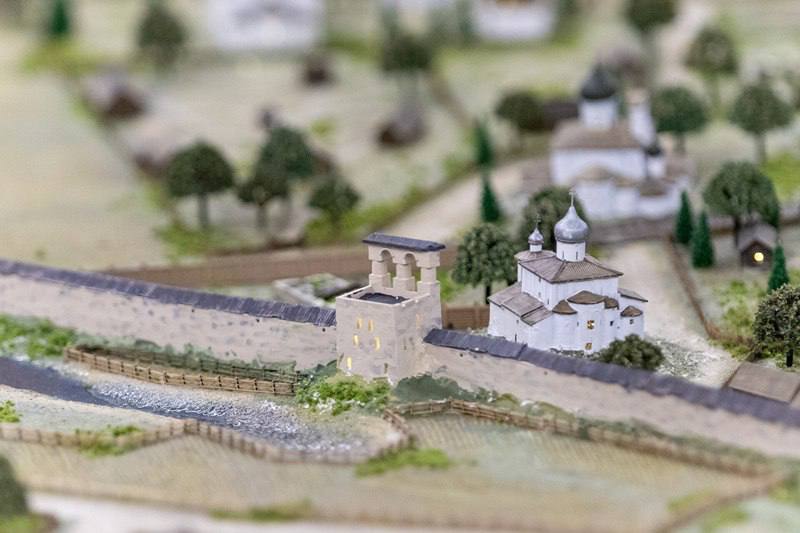 В Поганкиных палатах открылся макет, от которого захватывает дух: 230 гектаров, 3000 зданий, церкви, башни, торговые дворы… и даже крошечный крокодил на берегу Великой — как дань древней городской легенде.