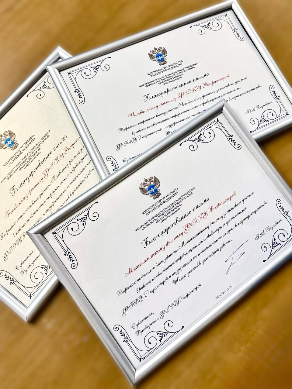 По итогам прошлого года за активное участие в работе по обеспечению информационного сопровождения деятельности ФГКУ Росгранстрой и поддержания его положительного имиджа в медиапространстве Благодарственные письма получили Махачкалинский, Псковский и Челябинский филиалы