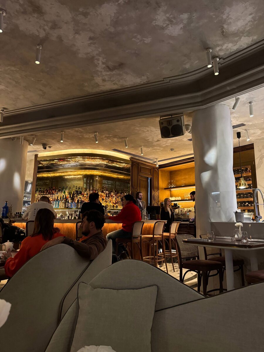 Интерьер держится на игре контраста: чистые линии и деликатные намёки на прошлое, свет мягко лежит на барной стойке, а ощущение заботы витает в каждом элементе. Это не претенциозная роскошь, а спокойная уверенность в том, что вечер пройдет без лишних хлопот.