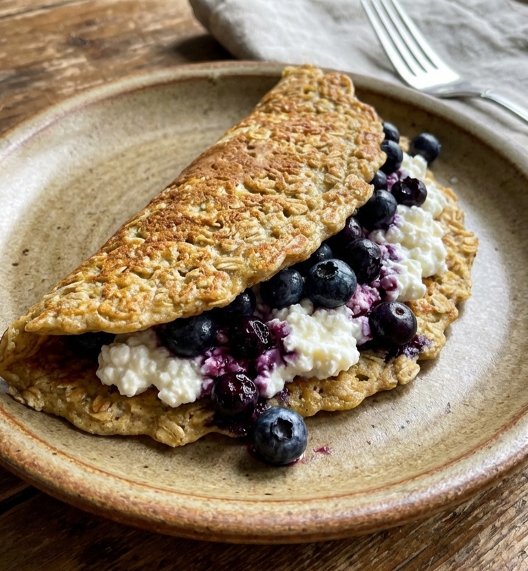 Завтракаем правильно! В 10:00 на столе появляется овсяноблин с творогом и ягодами.