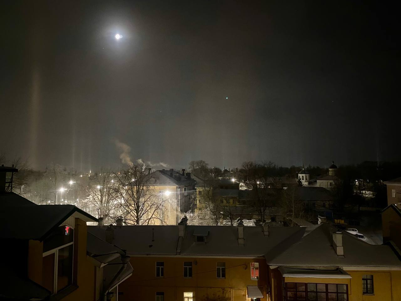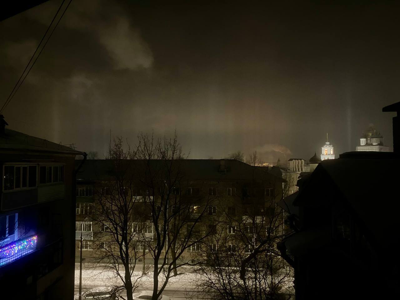 Световые столбы заметили в Пскове в ночь с 30 на 31 января