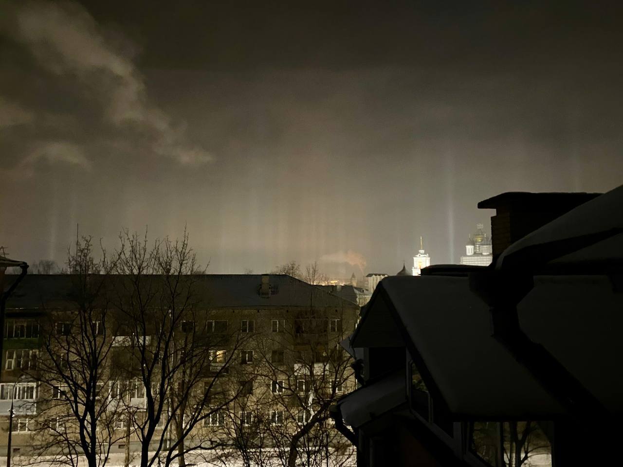 Согласно открытым источникам, световые полосы (световые столбы) часто появляются на небе зимой в морозную погоду. Иногда их путают с северным сиянием. Явление возникает из-за преломления и отражения света в ледяных кристаллах, содержащихся в воздухе. Они обычно наблюдаются в холодное время года, когда воздух насыщен ледяными кристаллами, и представляют собой вертикальные полосы света, которые поднимаются от горизонта и могут достигать высоты в несколько сотен метров.