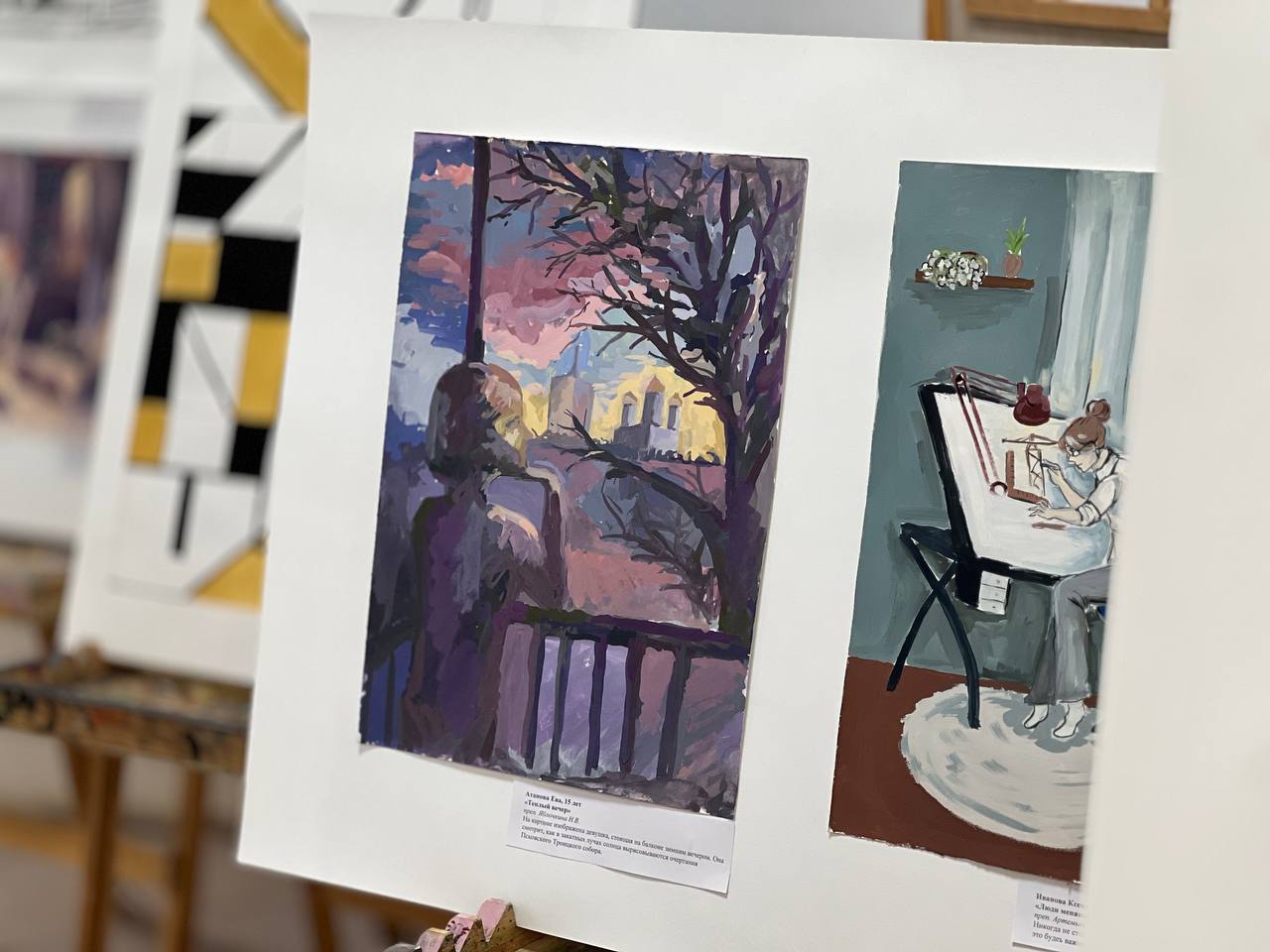 Юные псковские художники отразили в картинах свое видение Второй мировой войны. Кто-то связал его с тихими моментами в деревенском доме, другие авторы выразили свои мысли в абстрактных композициях, а некоторые сыграли на контрастах и на одном полотне объединили образы войны и мира.