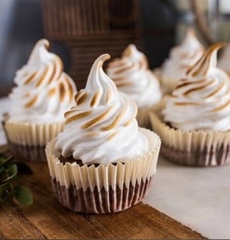 6. Поместить готовую меренгу в кондитерский мешок и отсадить на капкейки. По желанию, верхушки можно аккуратно опалить с помощью специальной горелки для создания карамельного эффекта.