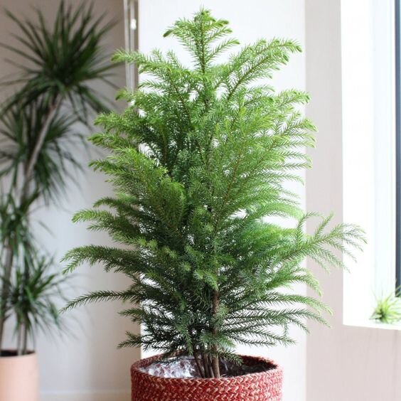 Это необычное растение, напоминающее миниатюрную ель, станет настоящей изюминкой в праздничном интерьере. С его пирамидальной кроной можно создать стильные новогодние композиции. Араукария предпочитает находиться у северных окон, так как не переносит прямых солнечных лучей. Это прекрасный выбор для тех, кто не любит сложные заботы — растению не требуется особого ухода и оно отлично справляется с недостатком света.