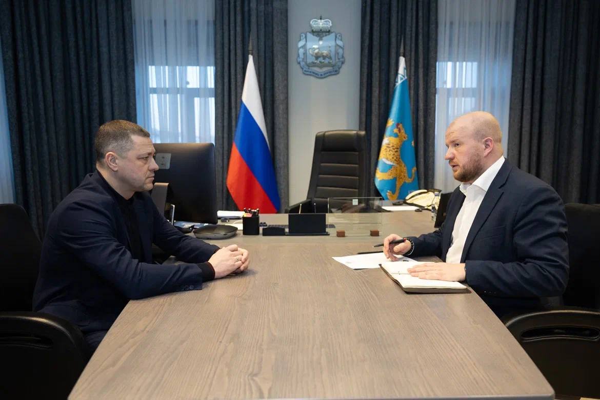 Губернатор Псковской области Михаил Ведерников и глава Пскова Борис Ёлкин обсудили планы ремонта дорог и благоустройства общественных пространств на текущий год.