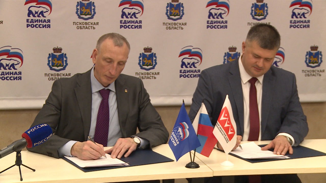 Соглашение о сотрудничестве подписали сегодня региональное отделение "Единой России" и Псковский областной совет профсоюзов