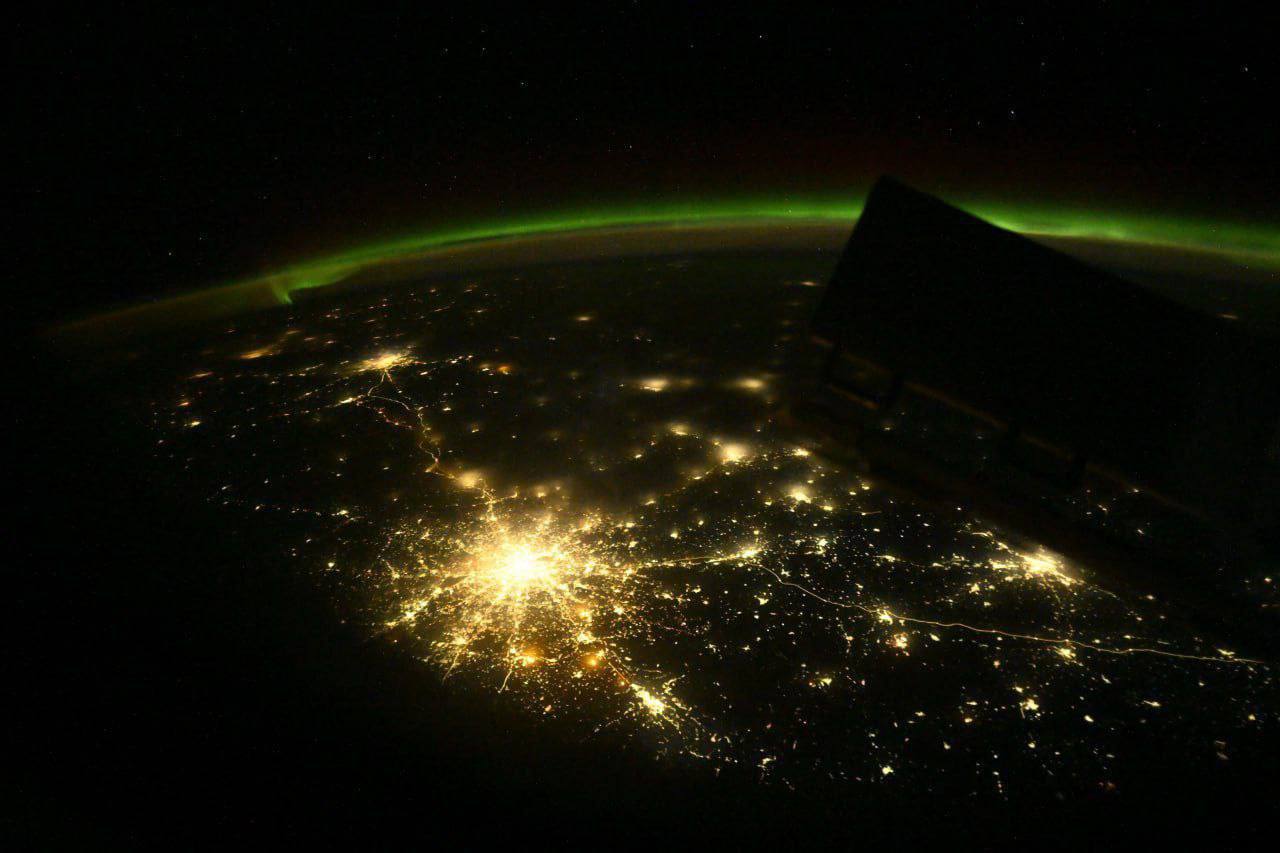 Космонавт Кудь-Сверчков показал фото Москвы с высоты 400 км на фоне полярного сияния