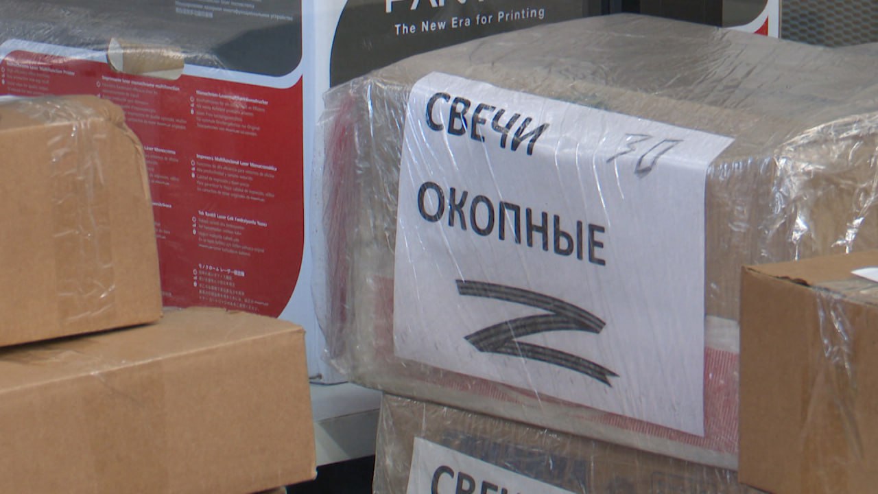 Собрали около 170-ти окопных свечей, почти 130 маскировочных сетей, сладкие подарки. Общий вес коробок - больше полутонны. Чтобы погрузить их все в КАМАЗ, понадобились усилия множества волонтеров. Груз праздничный, приурочен к наступающему Дню защитника Отечества.